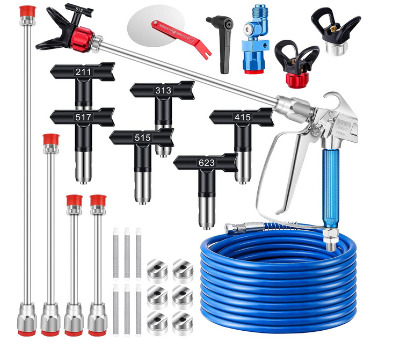 The value proposition here centers on completeness. Rather than purchasing individual components separately, you receive a full arsenal of tools in one box. The five spray tips (211, 313, 415, 517, and 623) cover different paint viscosities and spray pattern widths. This selection lets you optimize your setup for each specific task.