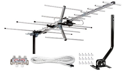 The package includes a comprehensive installation kit with mounting pole, brackets, hardware, and detailed instructions. A built-in signal amplifier boosts weak transmissions, helping pull in distant stations that other antennas miss. The amplifier features adjustable gain control for optimizing performance based on your specific location.