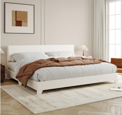 This king-size frame features a curved, adjustable headboard wrapped in quality faux leather. Available in white and other colors, the clean aesthetic suits modern and transitional bedroom styles. The diamond-stitched button tufting adds visual interest without overwhelming the design.