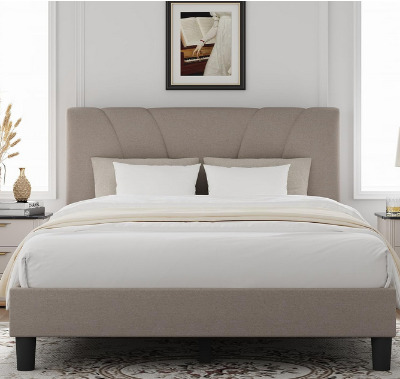 The linen fabric upholstery feels soft and breathable, contributing to a comfortable sleep environment. The fabric resists pilling and maintains its appearance with minimal maintenance. The beige color hides minor stains better than white or light gray alternatives.